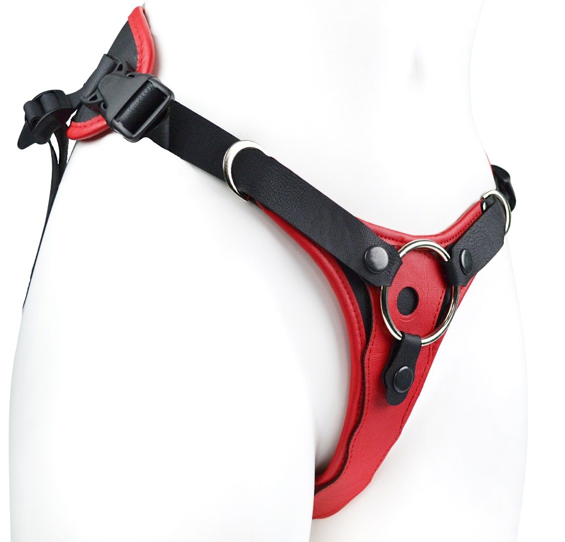 Перед Вами третье поколение женского классического пояса, снабженного передней частью с возможностью установить 2 типа коннекторов (фиксаторов). Акцент сделан на максимальном комфорте, атравматичности, точности и удобству регулировки. Добавлен бандаж. Бархатный влагопоглощающий внутренний слой, применение экокожи, кожаные стропы, бейка по краю многослойной основы изделия - дополняют картину обновления конструкции. Можно зафиксировать кольцом любой фаллоимитатор на присоске (2 кольца в наборе комплекта с разными диаметрами). Для смены колец – необходимо расстегнуть кнопки ремней вокруг отверстия и поставить подходящее по размеру кольцо. Коннектор (бобышка–соединитель) легко извлекается, разборный, состоит из двух частей, соединяющихся резьбой. Универсальность стыковочного узла позволяет использовать абсолютное большинство насадок, продающихся отдельно.