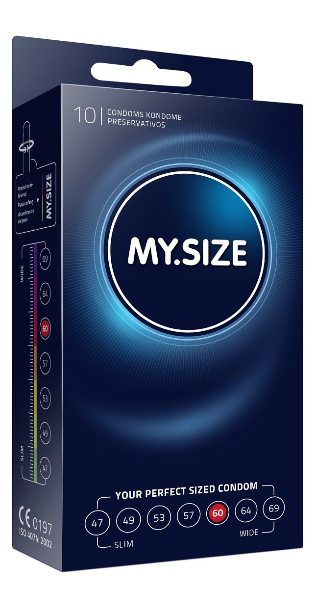 Презервативы MY.SIZE №10 размер 60 с силиконовой смазкой и резервуаром. Форма цилиндрическая. Качество ISO 4074: 2002, CE0197. Толщина - 0,07 мм. В упаковке 10 шт.
