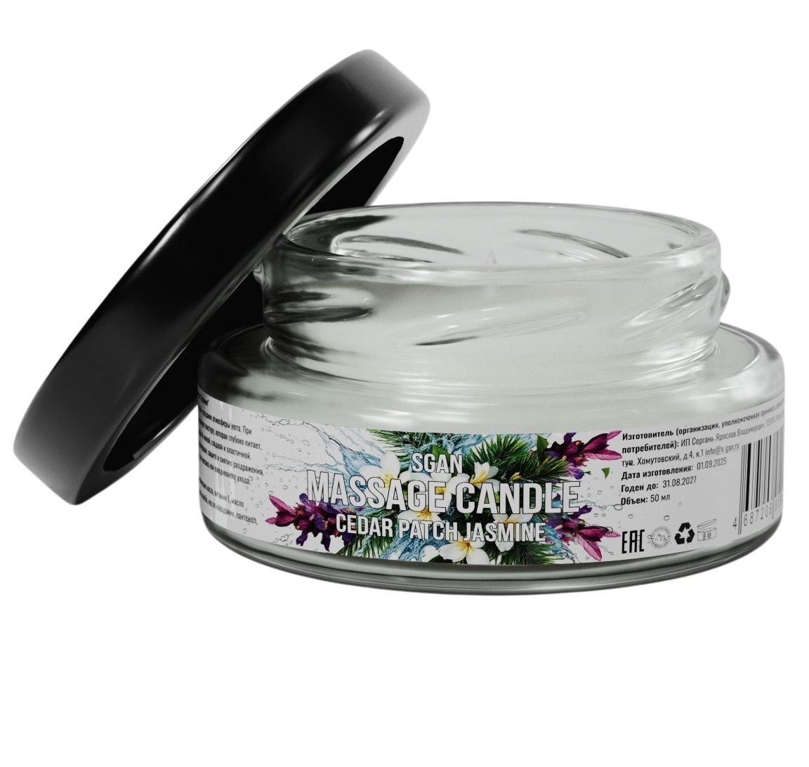 Массажная свеча с ароматом кедра, пачули и жасмина SGAN в стеклянной банке — это натуральное средство для расслабления, ухода за кожей и создания романтической атмосферы. Свеча изготовлена из 100% кокосового воска с добавлением ароматического масла янтарного мусса и хлопкового фитиля, что обеспечивает безопасное и чистое горение. При нагревании свеча превращается в тёплое массажное масло, которое глубоко увлажняет, питает и смягчает кожу, делая её шелковистой и ухоженной. Приятный аромат кедра, пачули и жасмина наполняет комнату уютом и гармонией.