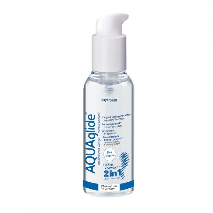 Используйте смазку AQUAglide 2in1 для массажа всего тела и для наилучшего скольжения по время интимной близости. Дозатор обеспечит наиболее комфортное использование смазки - вам не нужно будет отвлекаться от самого главного для того, чтобы закрыть крышку тюбика. Смазка изготовлена на водной основе - смело используйте ее с презервативом или любимой секс-игрушкой. Легко смывается водой. Без запаха. рН нейтральный.